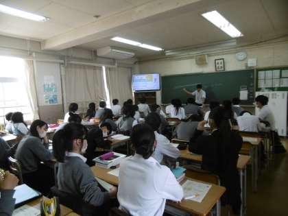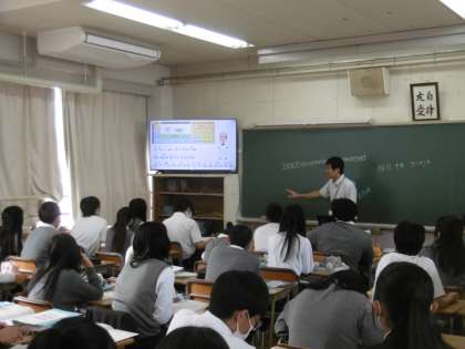 学習単元は「水溶液とイオン」、授業のめあては「原子の構造・性質を理解し、原子がどのようになると電気を帯びるかを説明することができる」でした。今日もとても分かりやすく作られたパワーポイントと学習プリントが準備されていました。
