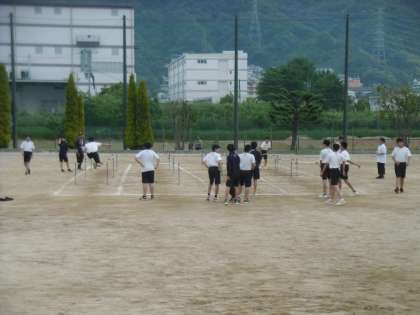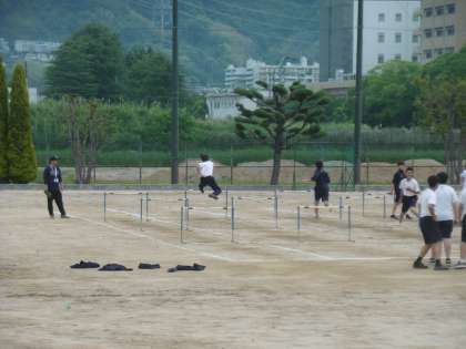 学習内容は「ハードル」でした。練習をしたあと、実技テストが行われていました。大きな声で準備運動をすることができていました。