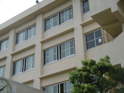 生徒が登校する前の様子です。すでに教室や廊下の窓は換気のために開けられていました。