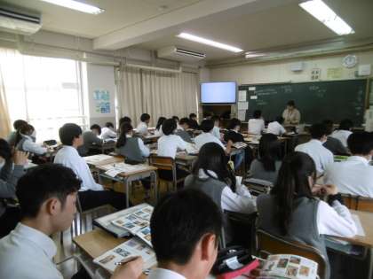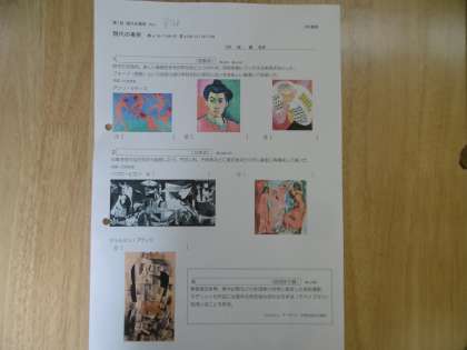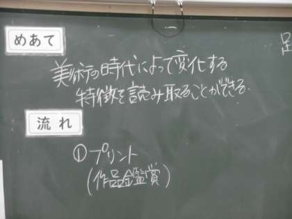 授業のめあては「美術の時代によって変化する特徴を読み取ることができる」でした。大型テレビにたくさんの作品の映像が映し出されていました。一人でも多くの生徒が美術作品に興味をもつことを期待しています。