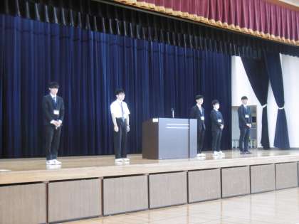 今日から始まる教育実習に向けて、教育実習生から全校生徒に向けて、あいさつをしてもらいました。本校の卒業生も多くいて、先輩として卒業後の進路などについても後輩たちに話をしてくれることを期待しています。