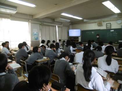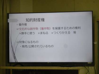 学習内容は「知的財産権」でした。授業後は振り返りシートに学んだことや分かったことを記入していました。