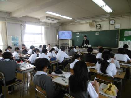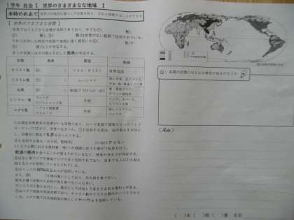 授業のめあては「世界の伝統的な暮らしや宗教を知り、文化を理解することができる」でした。分かる授業をするために準備されたパワーポイントが印象的でした。