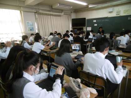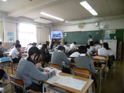 写真は上から、3年1組(社会)、3年2組(英語)、3年3組(社会)です。1組では、世界恐慌についての学習でした。2組では、「not as〜as(〜ほど、〜ではない)」の使い方についての授業でした。3組では、単元テストが行われる直前の勉強の様子です。3年生(46期生)は、今日もみんなでがんばっていました。