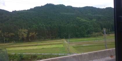 バスレクがイントロクイズになりました。今流行りの大好きな曲がかかると、生徒は歌っています。自然豊かな光景にバスも順調に進んでいます。