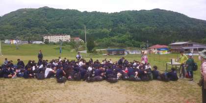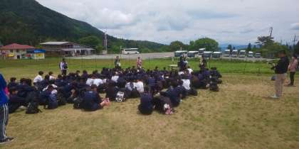無事にパークホテル白樺館に着きました。山の上にありせいか、半袖では少し寒いくらいです。写真は入館式の様子です。自然あふれる素晴らしい場所で、今から昼食を取ります。