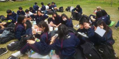 大自然の中で食べるお弁当は、また格別のようです。子どもたちは、本当にいい表情をしています。