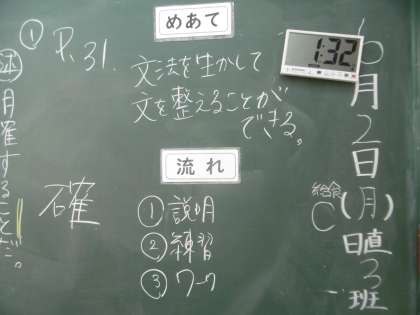授業のめあては「文法を生かして文を整えることができる」でした。本当に静かな授業でした。さすが本校の最上級生の授業態度だと感心しました。