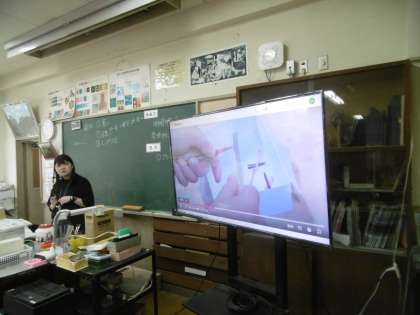 鉛筆の削り方の動画を子どもたちは静かに見ていました。48期生の生徒は、先生の話を聞く時の「姿勢」も抜群です。