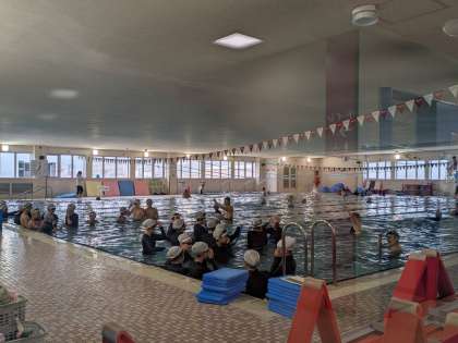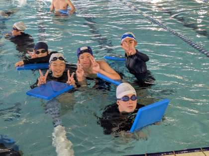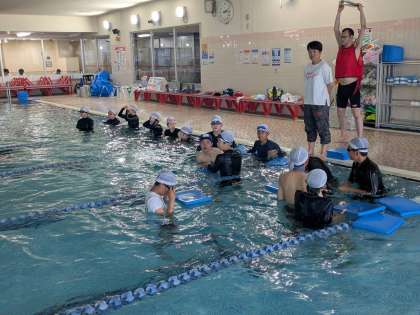 今日は水泳授業の民間委託の2回目でした。2年生が午後からコナミスポーツクラブ新石切で専門の指導者のもとで水泳授業を受けました。外は雨でしたが、室内の温水プールに子どもたちは大満足でした。短時間の指導でも、すぐに上達する生徒もいました。次回の民間委託の水泳授業は、6月10日(火)で対象は1年生です。