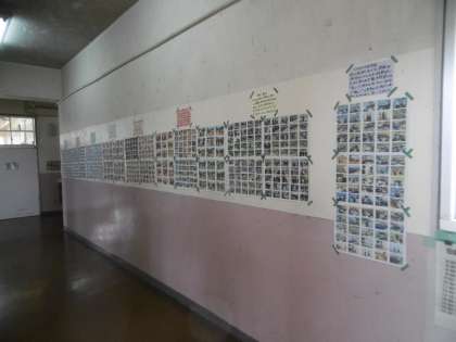 先週行われた宿泊学習の写真がたくさん掲示されていました。来校の際に、是非ご覧ください。