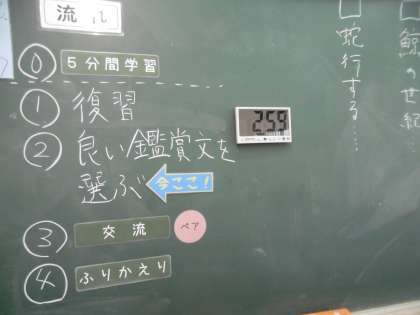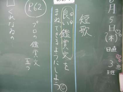 学習教材は「短歌に親しむ」でした。今日も黒板に授業のねらいや流れがきちんと示されていました。授業の現在地がよく分かる50分間でした。