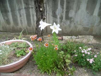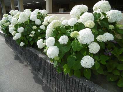 正門に咲いているユリです。校務員さんの丁寧なお手入れのおかげで、素敵なユリが2輪咲いています。下足室前の白いアジサイもとてもきれいです。
