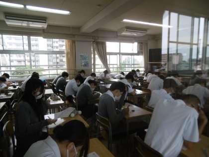 単元テストが行われていました。あまりにも静かな教室だったので、廊下からの撮影になりました。