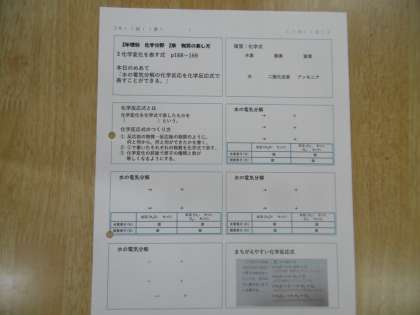 授業のめあては「水の電気分解の化学反応を化学反応式で表すことができる」でした。今週の水曜日から期末テスト2週間前になります。計画的に学習を進めましょう。