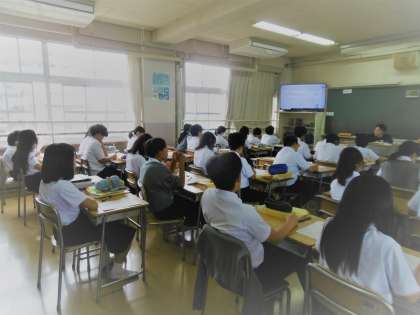 授業のめあては「きまりにしたがって、積・商を含む文字式を正しく表すことができる」でした。1年生は今月末に行われる期末テストが中学生になって初めての定期テストになります。テストの受け方を学習し、25日(水)から始まる期末テストに臨みましょう。