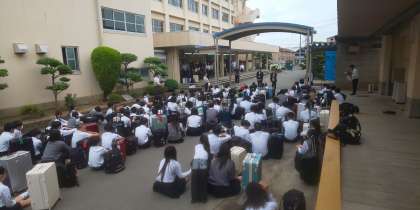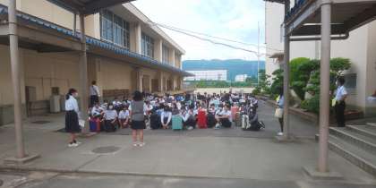出発式の様子です。全員が時間を守って集合することができました。さすが46期生です。実行委員のあいさつもとてもよかったです。