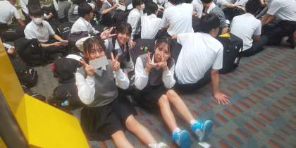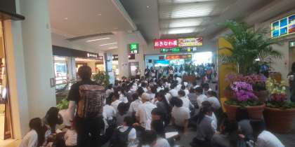 空港でトイレ休憩中です。これから平和祈念資料館に向かいます。