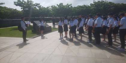 摩文仁の丘で平和の集いを行いました。46期生で考えた「平和の詩」を黙祷後に奉納してきました。46期生の式典に臨む態度はとても立派でした。