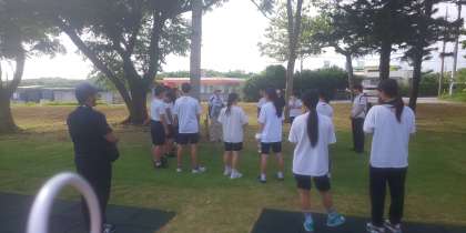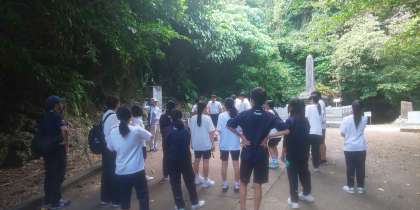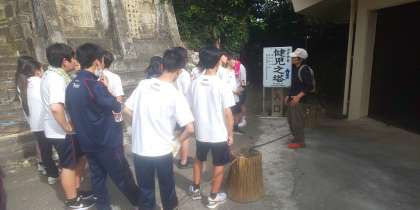 1組のガマ体験の様子です。ガマとは、沖縄戦で住民が避難した自然洞窟のことです。