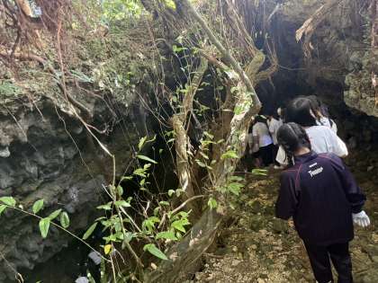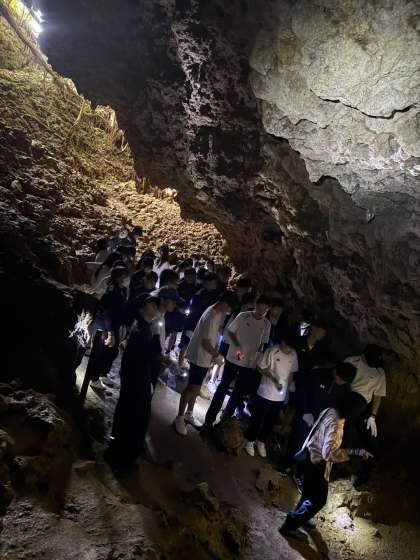 3組のガマ体験の様子です。ガマの中は、本当に真っ暗でした。