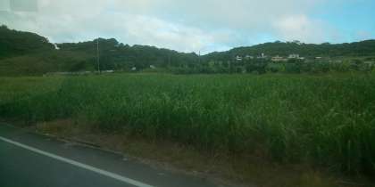 さとうきび畑を見ながら、今日泊まるホテルに向かっています。