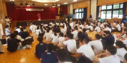 入村式の様子です。歓迎の歌「島人ぬ宝」を歌ってくれました。いよいよ民泊体験がスタートします。