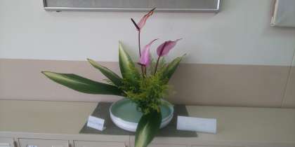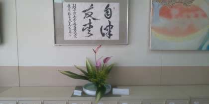地域の方が定期的に生けてくださっている職員玄関のお花です。谷川中学校は、たくさんの地域の方に支えられている学校です。これからも地域に愛され、地域の方との繋がりを大切にする学校をめざします。