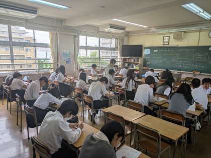 写真は上から、1組(理科)、2組(総合)、3組(理科)です。期末テスト9日前となりました。毎日の家庭学習と合わせて、テスト前の猛勉強が学力を高めます。がんばりましょう。