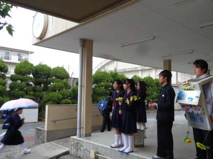 気持ちよく学校生活のスタートがきれるようにと、生徒会役員が早朝から「おはようございます」の声かけをしてくれています。