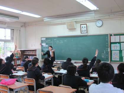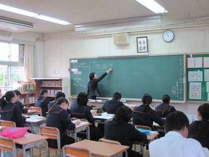 本日3限目に市教育委員会と校長OBの先生が訪問され、授業を参観されました。