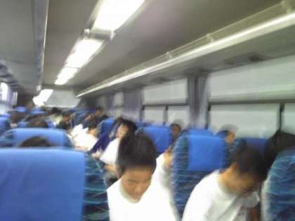 3号車(3組と1組)、高速に入ってバスレクが始まりました。特製ビンゴで盛り上がっています。