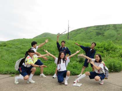 小雨降る中のオリエンテーリングですが、班の仲間たちと楽しそうに回っています。