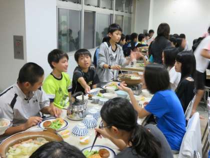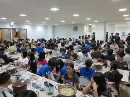 班で楽しく、食欲旺盛に晩御飯を食べています!