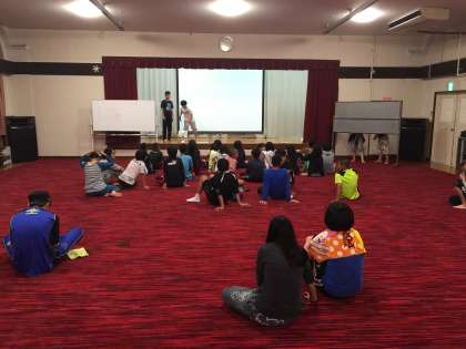 各クラスに分かれて、レクが始まりました。3組の様子です。これから何が行われるのか期待です。