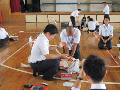 不測の事態に対応できるようにと、19日に教職員救命救急講習を行いました。