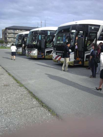 バスに乗車し、予定通りの時間に市民会館を出発しました。たくさんの保護者の皆さま、先生方のお見送りの中、出発です。