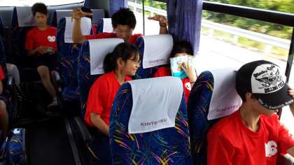 バスレクは一時休憩。次はビンゴの予定。トランプ中。酔わないようにねw