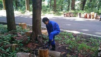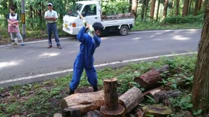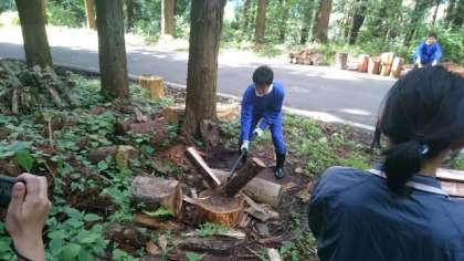 山にはいると、木こりボーイズを発見!似合いすぎて驚きました。