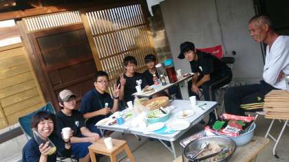 ちらし寿司にバーベキュー、とりたて生野菜に自家製味噌をディップ、自家製りんごジュース…これ以上のことがありますか!ご満悦の四人組☆先生達にジンギスカンを焼いてくれたH君、ありがとうウフフ