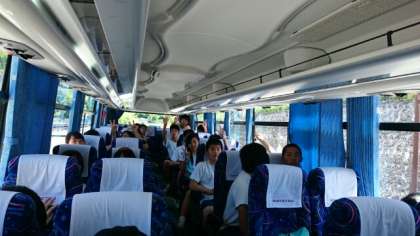 バスでラフティングへしゅっぱーつ。