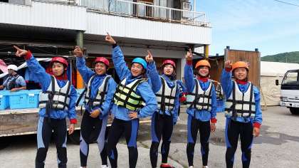 今からラフティングです。