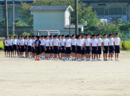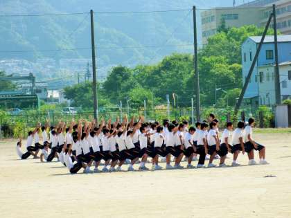 3年生男子による「集団行動・組体操」は午後のプログラム(No14)です。