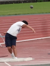 1日目は、3年生砲丸投の1種目でした。出場したのは北河内2位で地区予選を勝ち上がってきた星野くんでした。3年生の彼は、この大会を引退試合と決めて競技に臨みました。