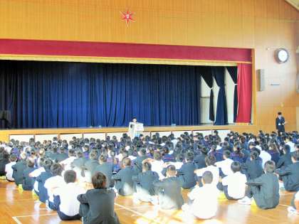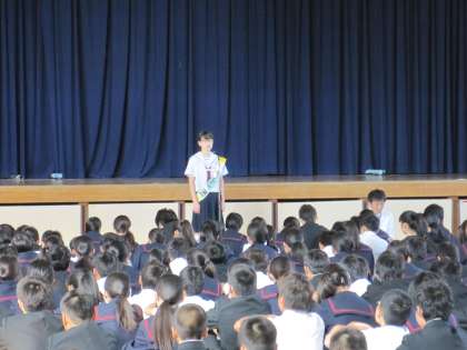エコキャップ回収運動「ポンキャッピー」の紹介や「いじめなくすん誓い隊」、生徒会新聞についてなど、前期生徒会から熱意のバトンを十分に引き継いでくれているようです。
