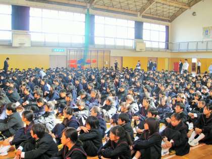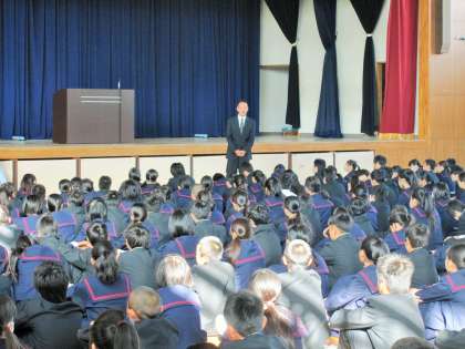その後、風紀点検(風紀委員会)の表彰があり、生徒指導主事から衣替え完了に合わせて身だしなみについて確認がありました。