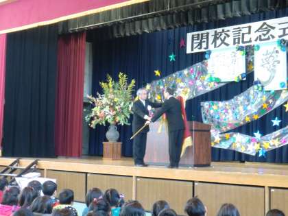 本日午前10時より、深野小学校「閉校記念式典」がおこなわれました。このたび、四条北小学校・深野北小学校と統合し、この4月から新たな「深野小学校」としてスタートします。