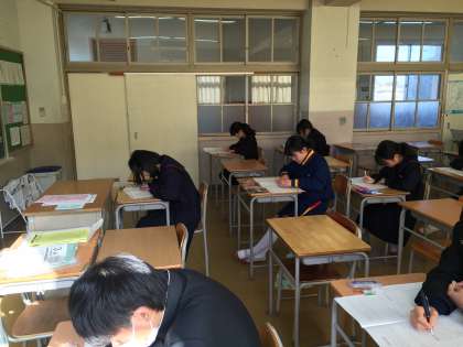 谷川中学校では、数検・英検・漢検・日本語検定など各種検定を学校で実施しています。数学検定は1学期(7月),2学期(11月)に引き続き3回目になります。今回は11名が受験しました。