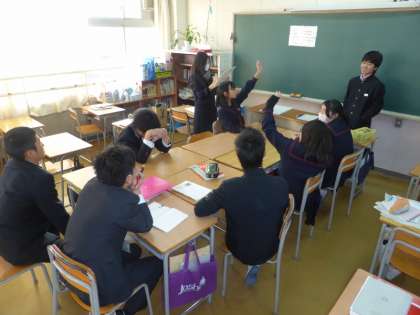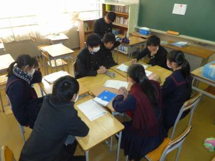 文集の編集,卒業までの取り組みについて話し合っています。文集は各クラス工夫を凝らして「クラスのページ」を作成中です。