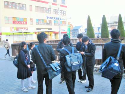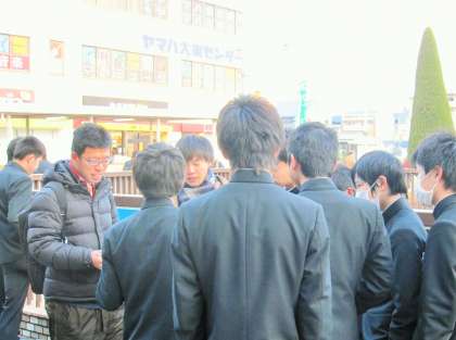 生徒たちは住道駅、野崎駅でチェックを済ませ、学年の先生方から励ましの言葉を受けて受験校に向かいました。